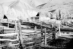 略带羞涩的初秋情调及丰收的喜悦都在这个名字豪气的小镇里极致演绎。初秋山林色彩层次分明,有淡淡的红,有浅浅的黄,还有翠色樟子松点缀其间。简朴的民居,悠游的牧群,偃松枝上的松塔和漫山遍野的果实都收纳在这童话般的明艳画卷中。