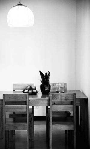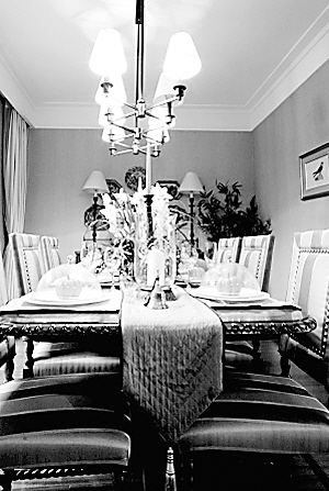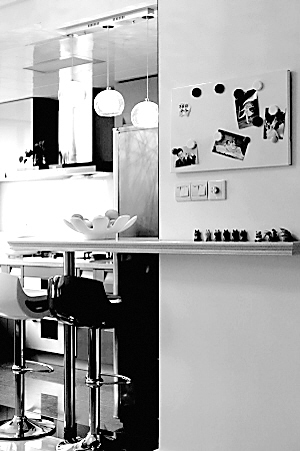 竖型直垂吊灯就适合搭配方形或圆形餐桌。至于开放式餐厅,则因为往往与客厅或厨房连为一体,在灯具款式的选择上还需要考虑到相连房间的装饰风格(图④)。