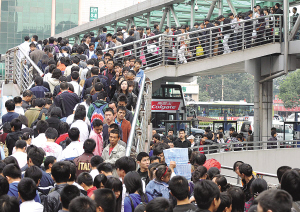 10月8日是“十一”黄金周的最后一天,全国各地均迎来返程客流高峰。这是进出北京西客站的客流(10月8日摄)。