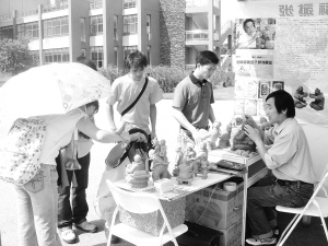 本报讯 10月12日闭幕的“中国非物质文化遗产全国巡回展上海游园汇”上,因带去的65件泥塑作品被众多收藏爱好者抢购一空,我市泥塑艺术家张振福不得不于昨日提前返回。
