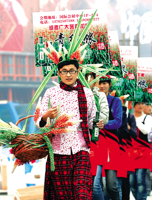 10月11日,2009年秋季全国糖酒商品交易会在郑州开幕。据介绍,糖酒会已经是第81届,也是第9次在郑州举办。本届糖酒会展览面积达12万平方米,共分9个专馆,展览内容主要包括酒类、食品类、调味品类和食品机械类。连日来,身携各种商品广告标语、招牌的促销员在郑州的繁华市区、大街小巷进行广告宣传,令人眼花缭乱,形成一道独特的“商战”新景观。