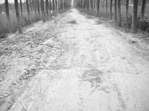10月10日上午,记者来到商水县魏集镇,看到这条宽约3米、从镇上通往郭屯村的沥青路,在该镇一中北侧的路旁立有一块石碑,表明这条路建成于2008年年初,属于“以工代赈”项目,不过该碑已被人推倒。这条3000多米长的路上到处坑坑洼洼(如图),骑车的村民个个小心翼翼。“没想到我们盼了多年的沥青路,竟是现在这个样子。”一位村民无奈地说,“路修好才半年就出现路坑,现在还没以前铺的砖路好走哩。开车走这路,比坐‘过山车’还‘舒服’。”
