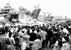 从10月2日起,在首都各界庆祝中华人民共和国成立60周年大会群众游行中大放异彩的彩车,开始在北京天安门广场进行静态展示,日均接待观众超过百万。后经北京市政府安排,国庆彩车在天安门广场展出的结束日期从10月7日延后至10月11日。
