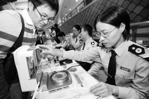 10月12日,工作人员在向观众展示肉制品成分快速检测设备。当日,以“安全食品、健康世博”为主题的迎世博倒计时200天食品安全活动在上海浦东新区正大广场举行。活动展出了最新的食品安全快速检测体系,演示了世博会期间电子化监管技术。其中,手持式移动办公、食品安全关键参数实时监控系统、重点企业实时监控系统等一系列水平先进的新型世博会食品安全保障“武器”首次公开亮相。新华社记者 裴鑫 摄