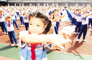 10月15日,广州市白云区景泰小学的学生在课间通过“集体洗手操”学习正确洗手方法。当日是世界洗手日,今年的主题是“干净的手能拯救生命”。联合国儿童基金会在今年世界洗手日呼吁全世界重视用肥皂洗手对于保障健康,特别是儿童健康的重要作用。此外,用肥皂洗手还是防止甲型H1N1流感蔓延的重要方式之一。新华社记者 刘大伟 摄