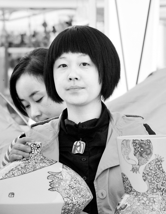 10月18日,大学生在展示自主创意的陈设陶瓷。 瓷都景德镇有一个创意集市,大学生们每周六带着自己的创意作品来这里销售,并互相学习交流。这个由乐天陶社主办的创意集市正成为大学生自主创业的乐土。今年景德镇国际陶瓷博览会期间,乐天陶社举办的相关专场活动日均成交额达7万余元,为大学生提供了很好的商业平台。新华社记者 章武摄