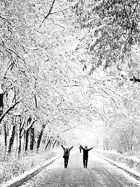 10月19日凌晨,齐齐哈尔出现降雪天气,大雪形成的树挂十分壮观。由于气温在零度以上,大雪逐渐融化。据了解,当地很少出现在深秋时节降雪的天气。任民 摄