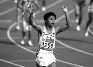 田梦旭出生于1989年,今年只有20岁,他在2007年开始冒尖,并入选了国家田径集训队,去年获得了全国锦标赛10000米的金牌,值得注意的是,在男子10000米中,他是单人跟跑,和他竞争的全国冠军以及全国纪录保持者都是有队友支援集团作战,因此能够赢得最后的比赛确实很不容易。(周超)