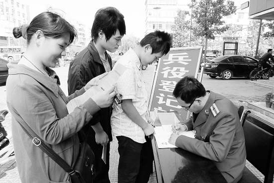 今冬征兵工作开始以来,我市各办事处武装部早计划、早安排、早动手,在辖区内开设流动征兵报名点。昨日早8点,记者在军分区招待所门口的七一路办事处征兵流动点看到,不少青年在咨询报名,填写基本情况登记表。记者 孙安平 摄