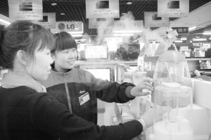 12月8日上午,带着疑问,记者走访了周口市区多家家电卖场,发现的确有很多电器品牌为了迎合消费者的需求,打起“抗流感牌”。“只要你在加湿器里加入板蓝根等药材,喷雾口放出的雾气就可以有效预防感冒,如果加入适量的醋,既能提高空气湿度,还可以预防甲流!”市区中州路一家电卖场加湿器展台前,促销人员正在向围观群众介绍某品牌加湿器的“特殊功用”。她说,最近加湿器卖得很火,顾客选购他们的产品,大部分是冲着“能杀菌防流感”来的。除了加湿器外,微波炉专柜上“瞬间杀菌、消毒、防流感”等字样的广告语也非常醒目,这些广告语一夜间成了众多商家的促销噱头。