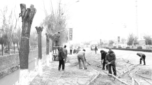 本报讯 12月6日下午,在市区交通东路,有一拨儿园林工人正在砍小渠旁的柳树枝。