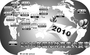 2010年是个体育赛事极其丰盛的年份。在这一年,让人翘首以盼的足球世界杯将在南非开战,而温哥华冬奥会在年初就会奉献火热的冰雪大戏。与此同时,各国运动健儿也会在新的奥运周期里继续努力,为两年后的伦敦奥运会蓄势。