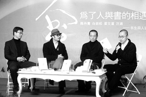 汪涵、白岩松、梁文道三个著名主持人加上陈丹青的组合,出现于汪涵和陈丹青新书的首发。