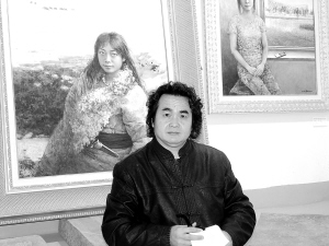 27日上午,记者进入展厅就被一幅幅油画所吸引,画面所呈现的青藏高原那种粗犷、原始、古朴的艺术风格,令人震撼。在采访蔚国银时,他给记者的感觉很亲切,言谈举止之间,不自觉流露一种艺术家所独有的气质。
