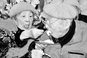 谢老太太出生在上海,和罗红祥先生婚后育有一子。目前,谢老太太与丈夫同住在长沙寿星公寓,除了腿脚有点不适外,他们身体都很健康。中新 摄