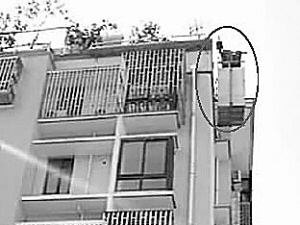 江苏省宜兴市近日出现一个史上最牛电梯,一户顶楼业主为了缓解爬楼梯携带重物的辛苦,自行在楼房的墙体外通过滑轮、电梯箱、玻璃等安装了一个观光电梯。 扬子 摄