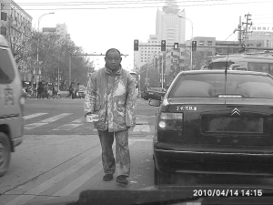 市民在路口等绿灯的时候,经常能看到手拿瓷缸的乞丐,穿梭于熙熙攘攘的车辆和行人中,他们沿街乞讨让人心生怜悯,但也给交通安全带来隐患。