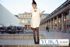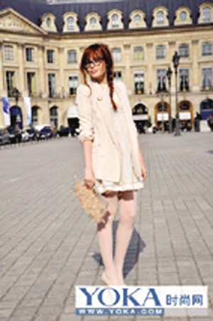 白色永远是春夏的主题色,长款白色西装清爽干练,内搭白色棉质连衣短裙,营造出丰富的层次感,最大亮点莫过于装饰羽毛的手包,品味十足!打造出既大方得体又不失个性元素的完美装束。