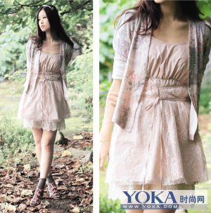 春暖花开,万物复苏,淡粉色连衣裙,腰间的细带线条感勾勒腰部线条,没有人会注意你突出的腹部哦,是很显瘦的一款裙子,搭配富有田园气息的花朵小衫,风情万种。(网易)