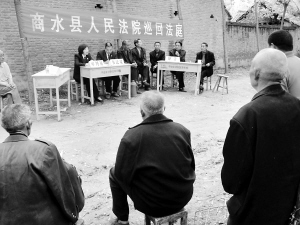 5月7日,商水县法院练集法庭将审判现场搬到平店乡,为村民解决纠纷。“巡回法庭到农村真是太好了。以前农民打官司,起早挤车往城里跑,不但要花来回路费,如果晚上赶不回来还得找地方住,真是不方便。”村民称赞此举架起了法庭与农民之间的“连心桥”。晚报记者 马治卫 摄