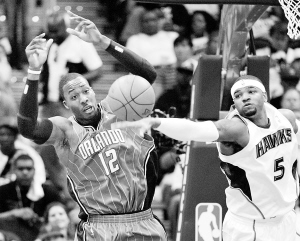 本报综合消息 北京时间昨天,在已经结束的两场季后赛次轮比赛中,奥兰多魔术队客场以105比75大胜亚特兰大老鹰队,将大比分改写为3比0,晋级在望。在另外一场比赛,洛杉矶湖人队客场以111比110险胜犹他爵士队,同样以大比分3比0拿到赛点。周二,这4支队伍将分别在老鹰和爵士主场进行第4场较量。