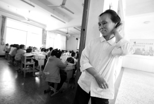 上图:婷婷的奶奶在教室外休息