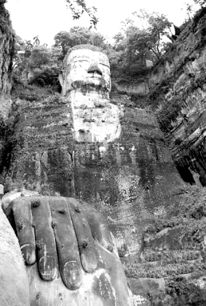 乐山大佛雕凿在成都岷江、青衣江、大渡河三江汇流之处的岩壁上,与乐山城隔江相望。