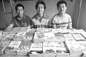 马军国是周口师范学院生物系2006级学生,2008年,学长——杨永军、马顷把大学期间收集的365本少儿读物捐给川汇区赵寨小学、建起第一所“小飞象图书室”时(本报2008年6月19日报道),马军国也曾参与其中。杨永军、马顷毕业离校后,马军国就接过了接力棒,利用做家教、发传单、在学校收废品等得到的收入到废品收购站“淘”少儿读物,到书摊、书店购买少儿读物。不久,5名同学李保国、赵东川、王慧、张晗、李燕也加入其中。到目前,6人已积攒了图书近700本,囊括科普读物、童话故事、小学生写作、世界名著、唐诗宋词等各个少儿图书种类。马军国说,现在他们课程早已结束,空闲时间很多,在找到捐书对象之前,他们还将继续搜集书籍。