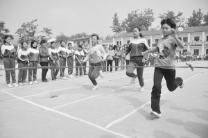 →5月21日,参加赛跑的学生在冲刺。“六一”即将来临,川汇区金海中心校举行迎“六一”运动会,乒乓球、跳绳、拔河、赛跑等一个个趣味横生的运动项目,让孩子们提前感受到了节日的欢乐和喜悦。