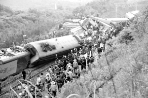 据新华社电 23日凌晨2时许,由上海开往桂林的K859次(编组17辆,载568人)旅客列车,运行至江西境内沪昆铁路余江至东乡间(K699+700米处,即东乡县孝岗镇)时,遇到山体突然滑坡,发生脱轨事故,导致机车及机后第1至9位车辆脱线,中断上下行线路行车。据初步统计,事故已造成19人死亡,71人受伤治疗,其中重伤11人,轻伤60人,坍塌泥石8000余立方米。有关情况正在进一步核实中。