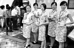 5月24日,新上岗的“旗袍导游”亮相苏州拙政园。当日,苏州拙政园经过公开招聘的13位“旗袍导游”整齐亮相。据了解,这13位导游员大部分来自苏州高校,她们将为来园游客进行免费讲解。新华社发