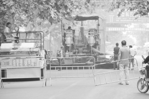 昨天,在改造的周口市区五一路上,工人开始铺油施工。本次改造包括翻新路面、便道等,将机动车道改为双向四车道。