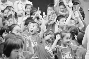 昨天上午,周口市区六一路一幼儿园举行“六一”儿童节游乐活动,让孩子们在游戏中提前感受“六一”儿童节的快乐。晚报记者 朱海龙 摄