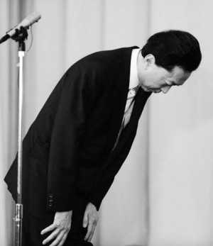 眼中含泪,鸠山告诉民主党议员:“我将辞职……政府工作没有反映出公众的意愿。”鸠山说,他愿为驻日美军冲绳普天间基地迁移事宜以及社民党退出执政联盟等承担责任,“我给冲绳民众制造了麻烦……我们需要努力将美军基地迁出冲绳,但我们没有达到想要的结果”。