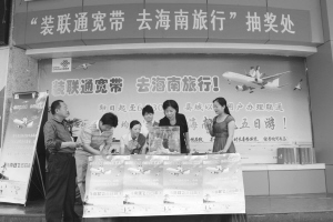 6月2日,周口联通公司在周口市平原公证处监督下抽取15名宽带客户,奖品是"海南双飞5日游"。据了解这是该公司回馈新老客户推出的系列活动之一,第二批15名宽带中奖客户将在7月2日抽出。(第一批中奖名单刊登在6月3日《周口日报》)刘伟 摄