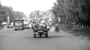 6月6日下午,在鹿柘公路(鹿邑至柘城)涡北工业园区路段上,一辆装载着许多货物的农用车缓缓行驶,好像被压得喘不过“气”来,存在着很大安全隐患。