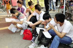 虽然很多考生笑言对高考“没感觉”、“无所谓”,不过,石玉洁还是有些许紧张的。交谈中记者得知,石玉洁已是第二年参加高考了,去年她考了个三本,因不如意没有去上。今年她的理想是向一本冲刺。“我做题速度有点慢。虽然嘴里说着不紧张,但我心里还是有点打鼓的。”石玉洁说,“不过,最近我已调整好心态,相信这次一定能发挥出自己最好的水平。”本版图片由晚报记者 朱海龙 孙安平 提供