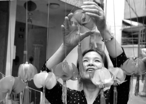 6月8日,浙江新昌县钟楼社区的一位居民悬挂刚和邻居们一起做的香袋,迎接端午佳节。每逢端午,当地民间都有挂香袋、吃粽子等习俗。新华社发