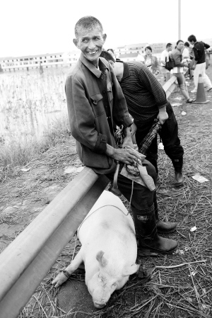 〔现场目击〕 记者22日在江西抚河因决口被困的罗针镇看到,全镇已是一片汪洋,公路、农田等全被淹没,房屋普遍淹至二楼以上。在福银高速公路抚州段,因决口被解救出来的受灾群众,暂留在高速公路上。