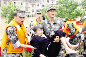 当日,正在江西抚州唱凯镇救灾的南京军区某舟桥旅官兵接到一名男子的求救:在唱凯镇石汐村委会河上后周村,一名81岁因病卧床的老太太被困在自己家中二楼。得知情况后,该旅立即派出官兵前去救援,经过40分钟的努力,官兵成功将老人运送到安置区医疗分队,经检查老人身体一切正常。