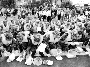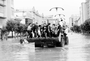 记者在县城了解到, 党政机关领导干部、武警、消防和公安等力量全力以赴投入抗洪抢险中,6000多名群众被紧急转移,除了投亲靠友安置以外, 县城还在第一中学和第四中学开辟了两个集中安置点。几十台挖掘机和装载机在县城洪水区域往来运送群众,县城社会秩序良好。