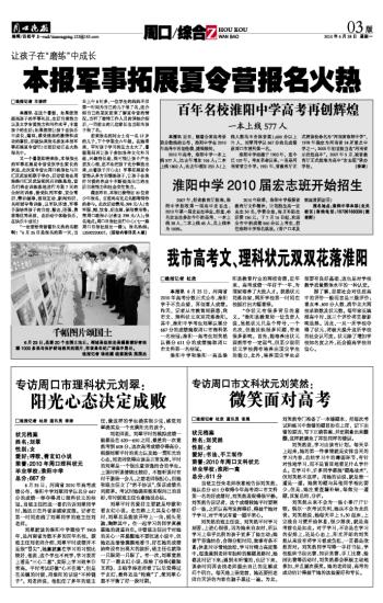 我市高考文、理科状元双双花落淮阳