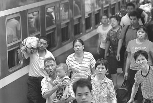 7月1日,旅客在合肥火车站乘车出行。当日,2010年全国铁路暑运工作启动。根据铁道部日前出台的暑运方案,2010年铁路暑运自7月1日起至8月31日止,共62天,预计将发送旅客3.17亿人次,日均发送旅客511万人次,同比增长8%。新华社发