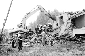 7月8日,救援人员在爆炸现场一座倒塌的小楼内进行紧张救援。当日凌晨5时31分,位于河南平顶山市湛河区凤凰岭矿区一煤矿地面建筑发生爆炸。目前已造成6人死亡,34人受伤,其中重危伤员2人。详细情况在进一步核查中。目前,受伤人员已陆续在医院接受救治。事故救援和其他人员查找工作仍在紧张进行中。新华社发