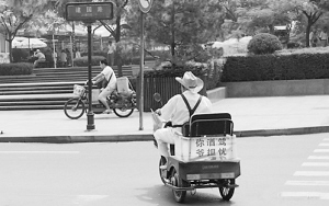 7月11日21时许,西部网网友“拍得乐”将自己白天逛街时拍摄的5张照片传到网上,照片的主角是一位胡子花白的老大爷,白衬衣、背带裤、牛仔帽、墨镜,老大爷十足的潮人打扮。让网友感兴趣的是,老大爷骑的电动三轮车上贴着搞笑的标语———你酒驾,爷担忧。“拍得乐”打听得知,老爷子姓张,82岁了,家住东关正街,平日里就喜欢骑着电动三轮车到环城公园看秦腔,或到处看看古城的新变化。(西晚)