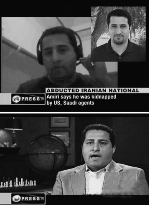 6月8日,伊朗国家电视台播放了一段录像,一名自称阿米里的男子称自己在2009年到沙特阿拉伯朝圣时被CIA特工绑架。这名男子在录像中说:“他们把我带到一个不知道具体方位的房屋里,给我打了麻醉针。”他说美国情报部门对他实施了8个月的心理和生理折磨。他在录像中称自己是伊朗大学的“专家和研究者”,但美国威逼他诬称偷窃核技术。