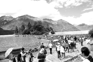 今年上半年,西藏共接待国内外游客180万人次,比去年同期增长20.3%,实现旅游总收入13.9亿元,同比增长23.6%。图为西藏林芝巴松措游人如织。 新华社记者 文涛摄