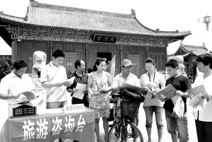 本报讯 “我的骑游行动就是宣传环保理念,唤醒人们对环保的重视。”7月13日下午,当安徽花甲老人周圣凤来到老子故里鹿邑县城后,他顾不得休息,推着自行车,冒着酷暑向街头的过往行人散发环保资料,宣传环保知识(如图)。