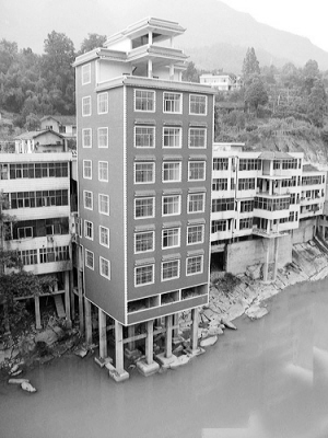 张某告诉记者,他是从鹤峰县铁炉乡一个偏远的乡村移民过来的。该乡适合建房的平地不多,居民基本上都把房子建在集镇的主干道旁,由于主干道边的宅基地较窄,当地的大多数房子都将地基打在河道上,并在河道上建起两三米高的基柱。由于自己原来的房子就建在路边,这栋房屋就和原来的房子连在一起。