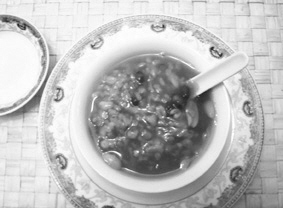 这款消暑开胃粥的做法非常简单,只要将以上三种原料加入适当的水(大约1000毫升),熬熟即可。